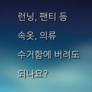 - 속옷 (런닝, 팬티 포함): 재활용 가치가 낮으므로 일반 의류 수거함에 버리지 않는 것이 좋습니다. 찢어지거나 심하게 낡은 속옷은 일반 쓰레기로 분류하여 버려주세요.