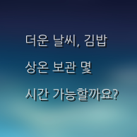 - 가급적 1시간 이내 섭취: 더운 날씨(25도 이상)에는 김밥을 상온에 1시간 이상 보관하지 않는 것이 가장 안전합니다.
